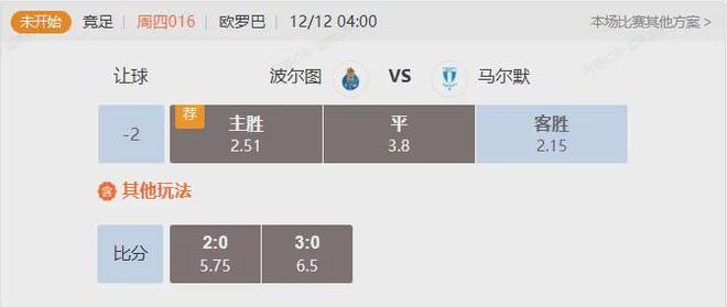 网易宏材今日特邀专家李大利对一场欧联杯比赛进行分析。更多精彩方案,可下载“网易宏彩”APP进行评测! 1、专家:李大力足球俱乐部 周四016欧洲 波尔图vs马尔默 开始时间:2025-12-12 04:00:00 两个进球是当今欧洲这么多场比赛中最大的。通过球队之间的横向对比发现,该指标总体上反映了两支球队的形象。马尔默在上一场欧联杯比赛中刚刚0:3不敌诺丁汉森林。当时,诺丁汉主场的指数为-1.5;而诺丁汉主场对阵波尔图时,该指数为-0.25。波尔图的形象可能比诺丁汉稍微好一点,所以马尔默主场-1.75完全正常。这个游戏主要是关于团队激励。马尔默本赛季失败,赛季结束时排名联赛第6。他们在欧罗巴联赛中1平4负仅积1分,似乎缺乏动力。在。从输给诺丁汉的数据来看,马尔默全场比赛只有一次射门,甚至没有角球。就像球队正在度假一样。而且,马尔默伤病问题严重,一线队7名球员可能缺阵。波尔图在葡超联赛中取得12胜1平(平局是本菲卡),已经领先第二名里斯本5分。而恰巧他们在欧联杯中排名第8,这将自动晋级16强。他们还需要努力,遇到默默无闻的马尔默是一个很好的机会。总而言之,我更希望波尔图能够大胜,至少赢两球。选择体育彩票让分方式中奖+平局,预测比分为3:0或2:0。