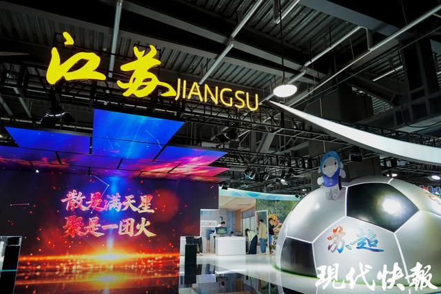 11月5日,第八届中国国际进口博览会在上海开幕。在江苏展区,今年首次亮相的苏格兰超级联赛元素收尾。尤其是很多人都在拍照,看着闪闪发光的苏超冠军奖杯。展区中央引人注目的是11月1日刚刚颁发给苏超冠军泰州队的奖杯。从获奖到参加进博会仅用了三天时间。奖杯从江苏郁郁葱葱的绿野“马不停蹄”来到进博会,向世界展示了江苏体育的新魅力。漫步展区,随处可见苏超的元素。常州恐龙公园及周边地区的可爱恐龙“娇娇”、“江江”、苏超的宠物系列“江豚”备受关注。 《苏超花茉莉》“e足球紫砂壶”以茉莉花为纽扣,以足球为身,以13个城市标志为装饰,将苏超非遗技艺与知识产权融为一体,既展现了江苏省深厚的文化底蕴,又体现了苏超足球的活力与激情。此外,还有红山动物园联名足球、马庄香宝足球、南京肥皂足球、芯片足球等。鼎奇体育的用球也在场内展示,苏超用小型足球挖掘巨大的产业潜力,将体育精神、本土文化和非物质文化遗产工艺融为一体,在中国国际进口博览会的世界舞台上向世界各地的游客展示江苏的活力。